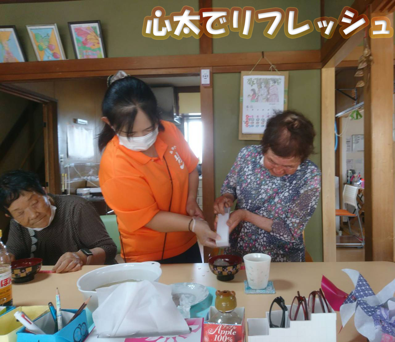 6月18日にオレンジカフェを開催いたしました。今回は4名の方が参加してくださいました。体力テストでは、実年齢よりもお若い、体力年齢40代を記録された方も! 吹き矢に挑戦していただいたり、休憩の合間に心太を食べてリフレッシュを図っていただいたり、楽しんでいただけました。次回のご参加もお待ちしております!