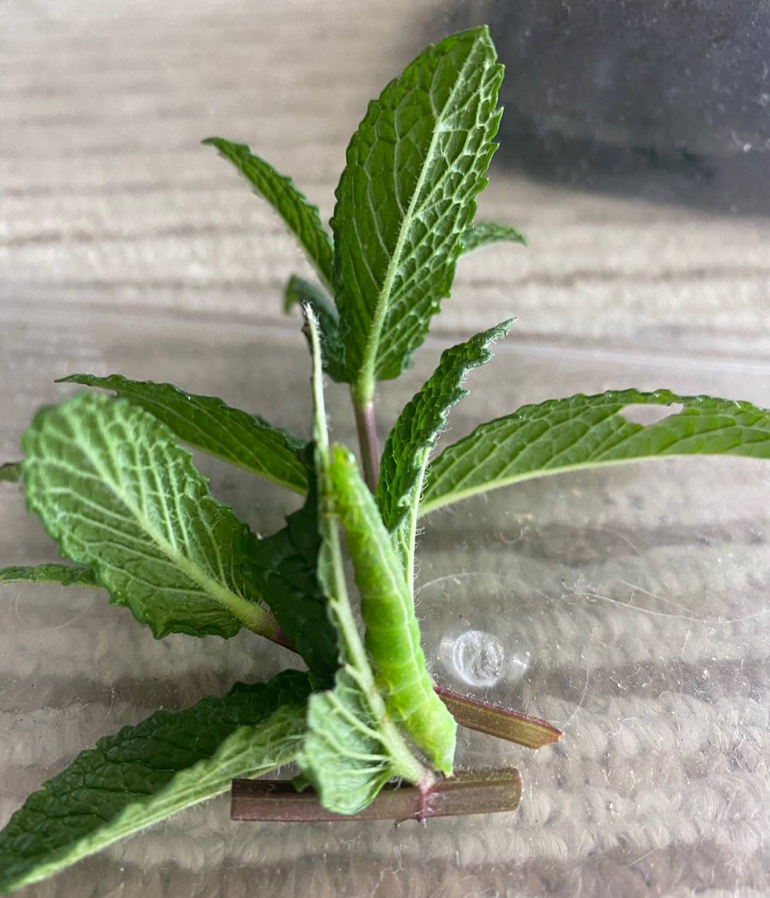 ミントの葉を栄養に育っています。無事に孵化できる様に見守ります。 |